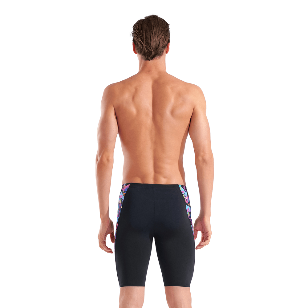 The Arena Chameleon jammer features a multi-colour mushroom and chameleon inspired design.  This pattern extends down side panels on each thigh with the front and back of the jammer being plain black.