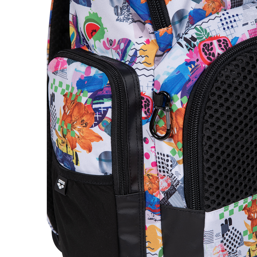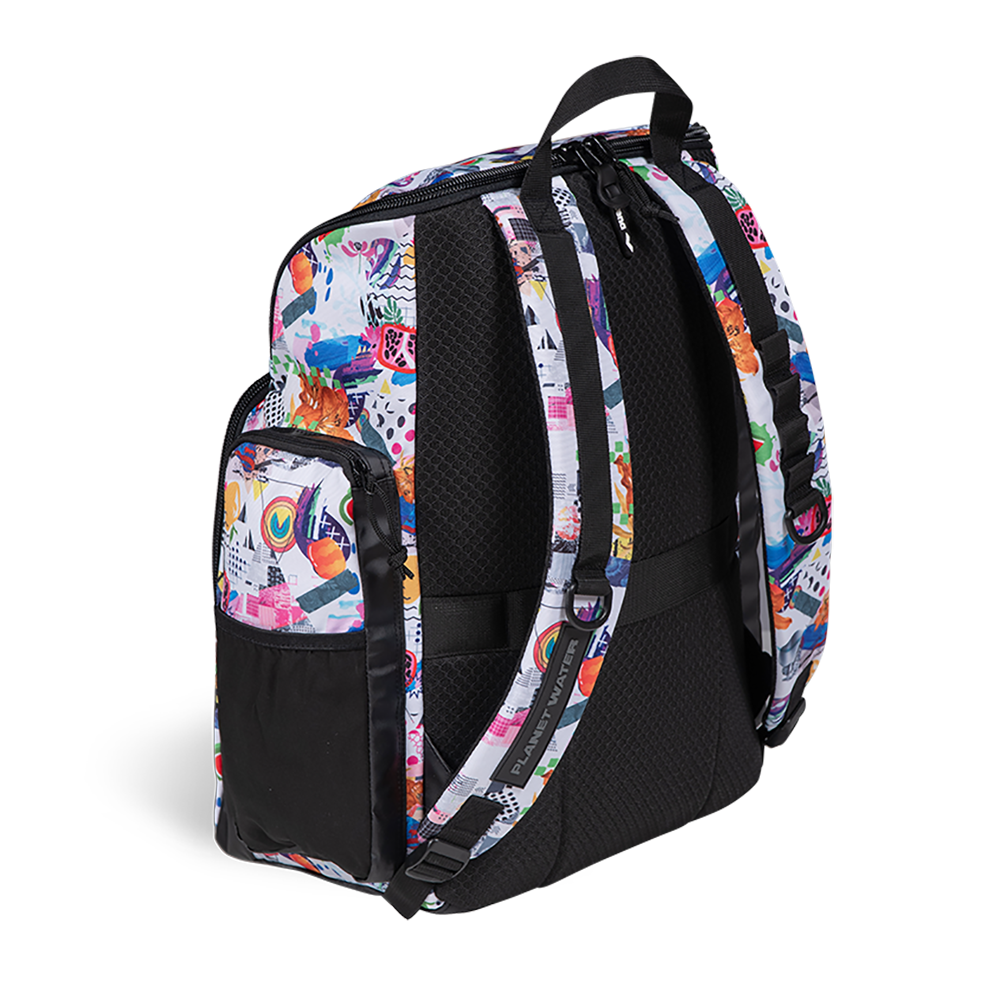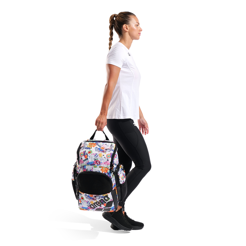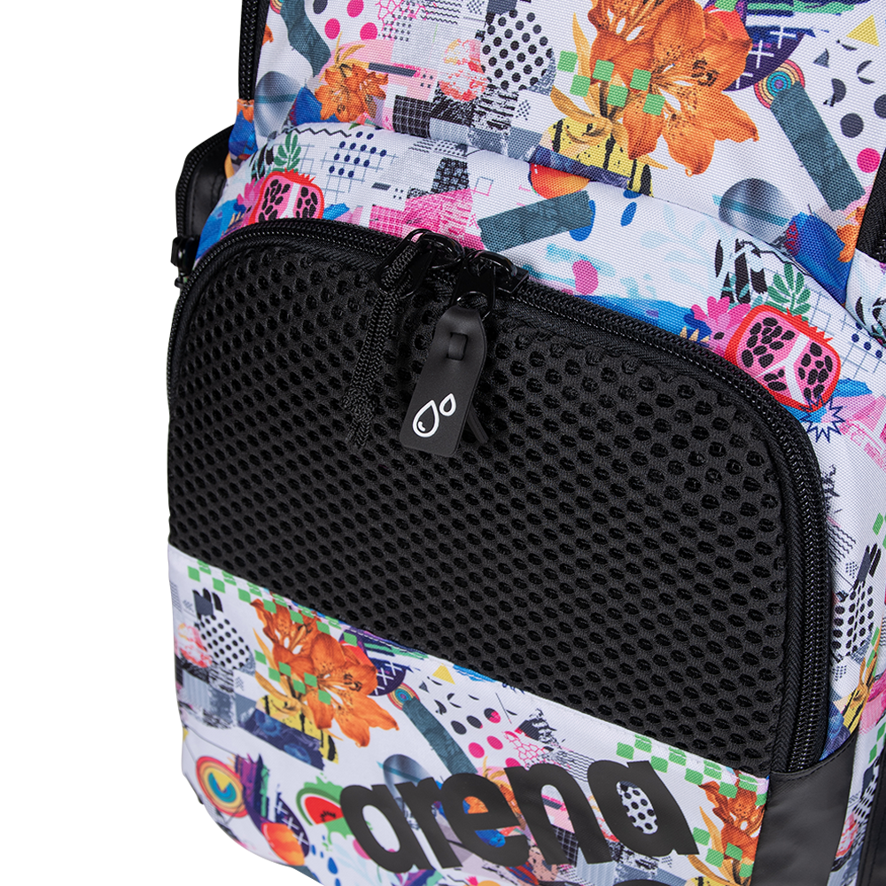 Printed with a multi coloured design and finished with the arena logo in black, this is an essential swim companion. Made with water-repellent fabric and moisture-control compartments this backpack keeps gear protected and organized. With smart features like a laptop sleeve and trolley strap, it’s equally at home on the pool deck or in the airport lounge. Perfect for swimmers who are always on the go!