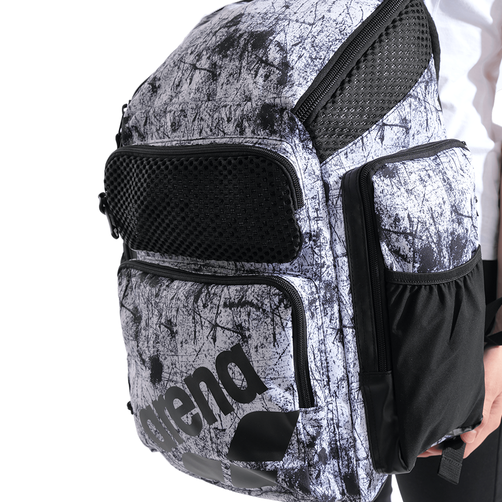 Printed with a blue and white design and finished with the arena logo in white, this is the ultimate swim companion. Made with water-repellent fabric and moisture-control compartments, it keeps gear protected and organized. With smart features like a laptop sleeve and trolley strap, it’s equally at home on the pool deck or in the airport lounge. Perfect for swimmers who are always on the go!
