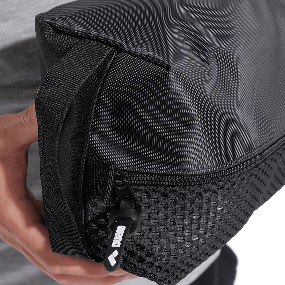 Compact yet roomy with 7 litres of space, the One Go Pocket Bag is the perfect add-on for your arena backpack or a standalone carry. The ventilated mesh panel keeps shoes or body care essentials fresh, while the practical handle offers easy transport.